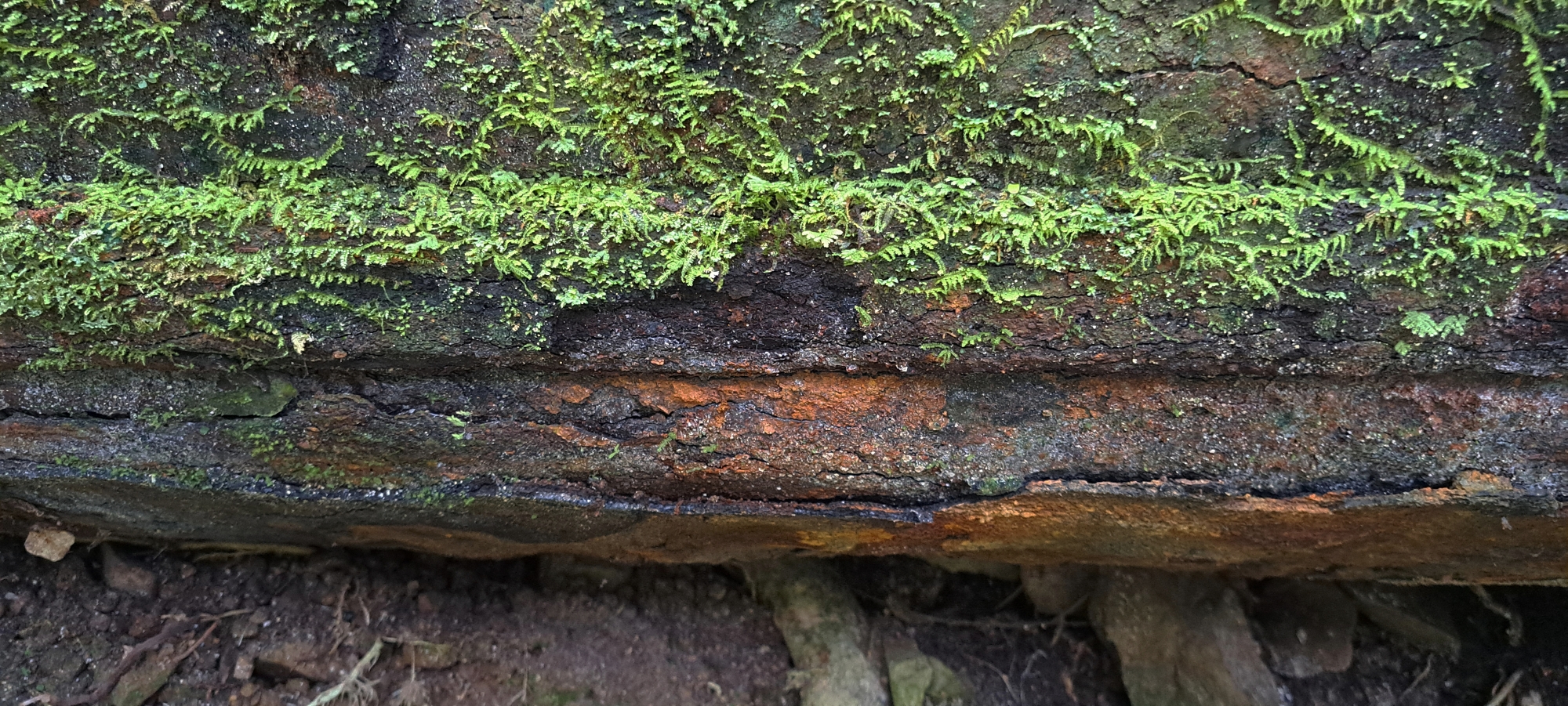 We continued east along the road to an exposed section of the old water race, and just beyond it, an unassuming large rock or stone by the roadside. According to one of my companions, this was part of the race, and closer inspection confirmed it. It may have been a section of the roof or floor. Scraping away grass growing atop, revealed plank outlines used during the concreting process. A little further on, we spotted an old section of the Orongorongo pipe in the bush, so I took some photos. We then moved on to a walking path near the Wainuiomata Water Museum where the race ran directly beneath, at least according to an old map.