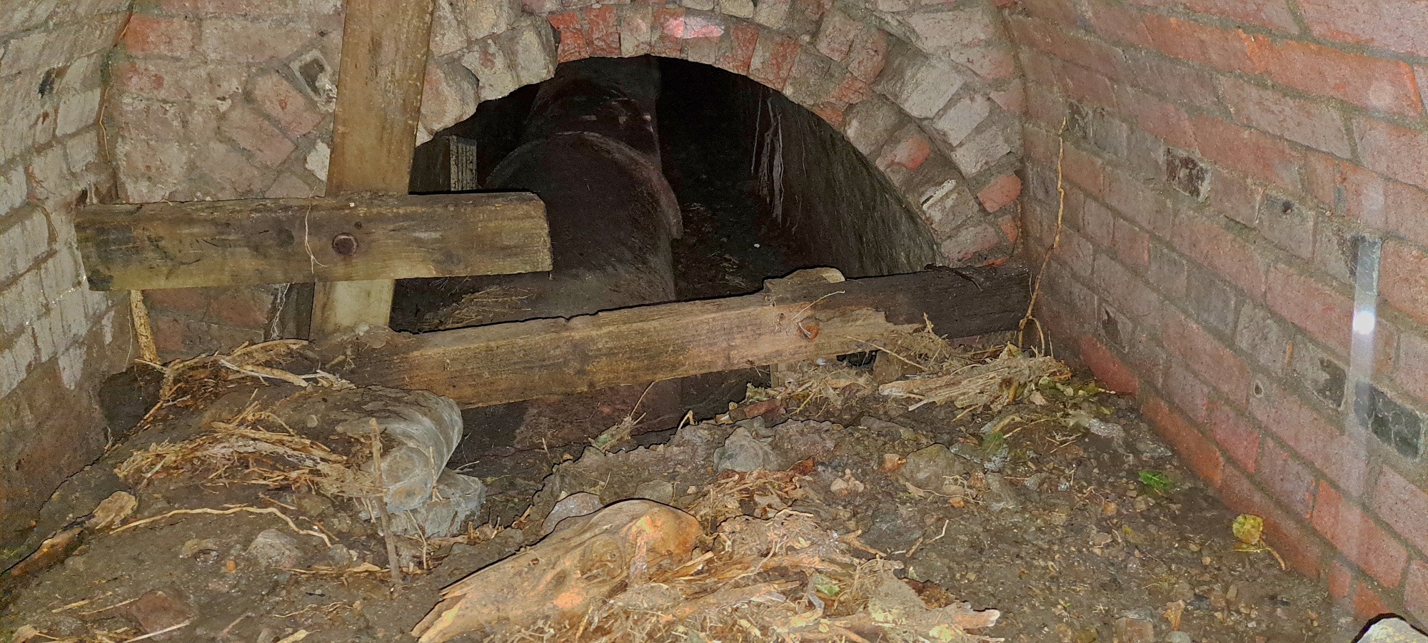 For decades, the Hair Street Creek Tunnel has directed the flow of Hair Creek under The Village. It remains in use today, even with the recent housing developments nearby. The tunnel features various drains and pipes that feed into the main tunnel. The structure consists of two parts: a circular concrete pipe that transitions into a rectangular tunnel.