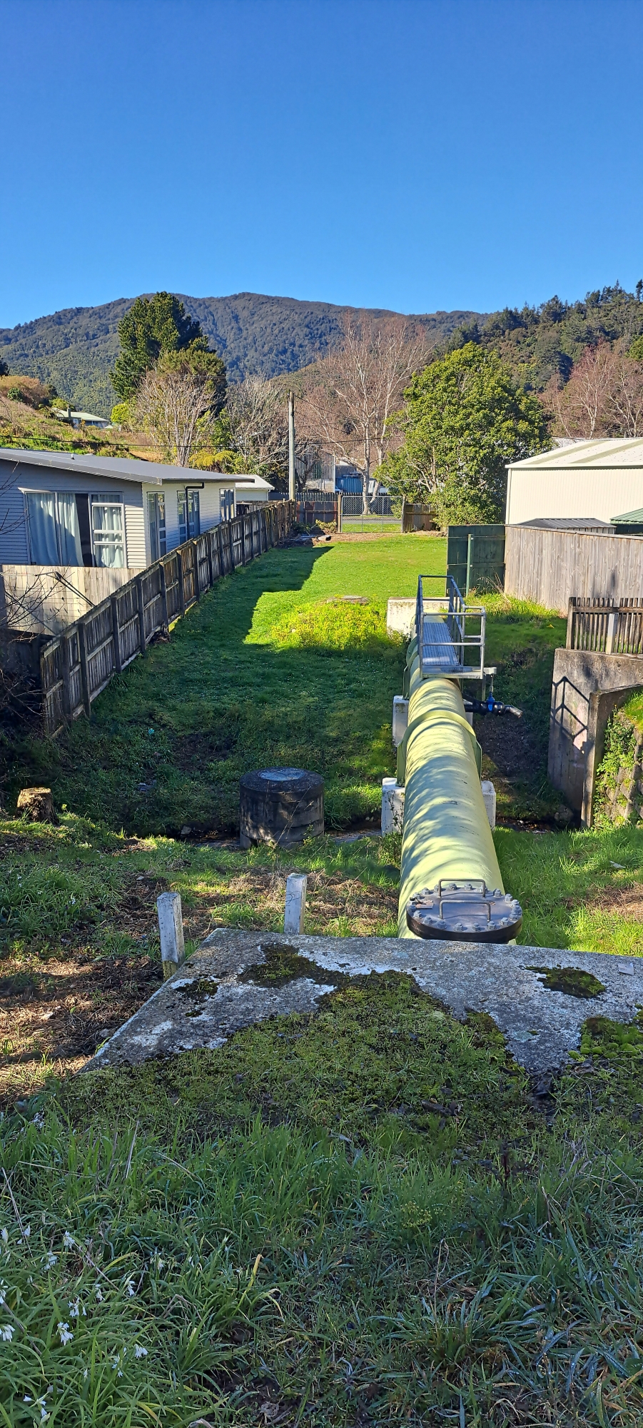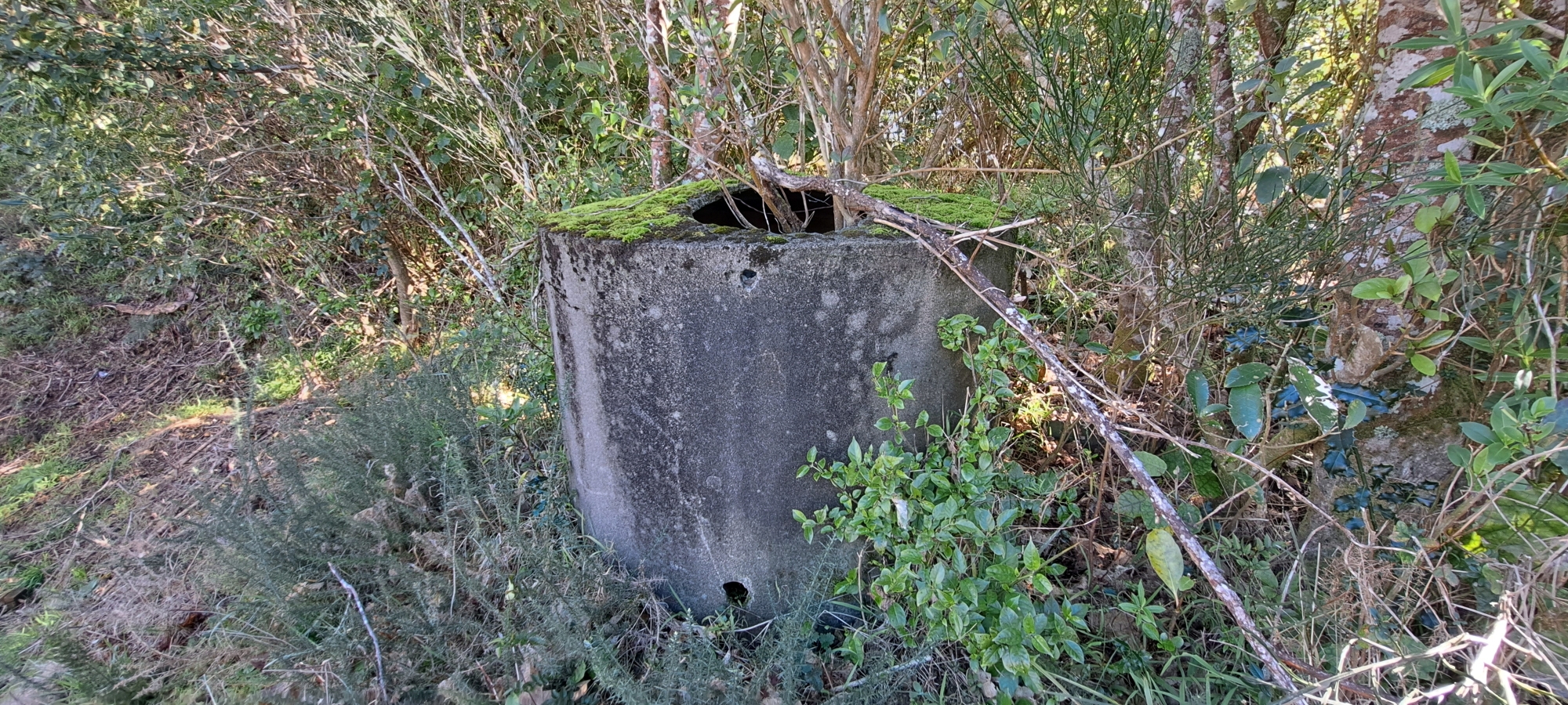 The exact location of the tunnel is uncertain, though the general area is known. It may have been beside the current green pipe in the same area, or possibly even in the same alignment, as an existing tunnel would have been a convenient route for laying that pipe. Alongside the green pipe are several active manholes set next to the pipe. However, there is also an older manhole located on the opposite side of the green pipe, now partly hidden by regenerating bush. This feature may have been connected to the earlier pipe that passed through Dick’s Tunnel.