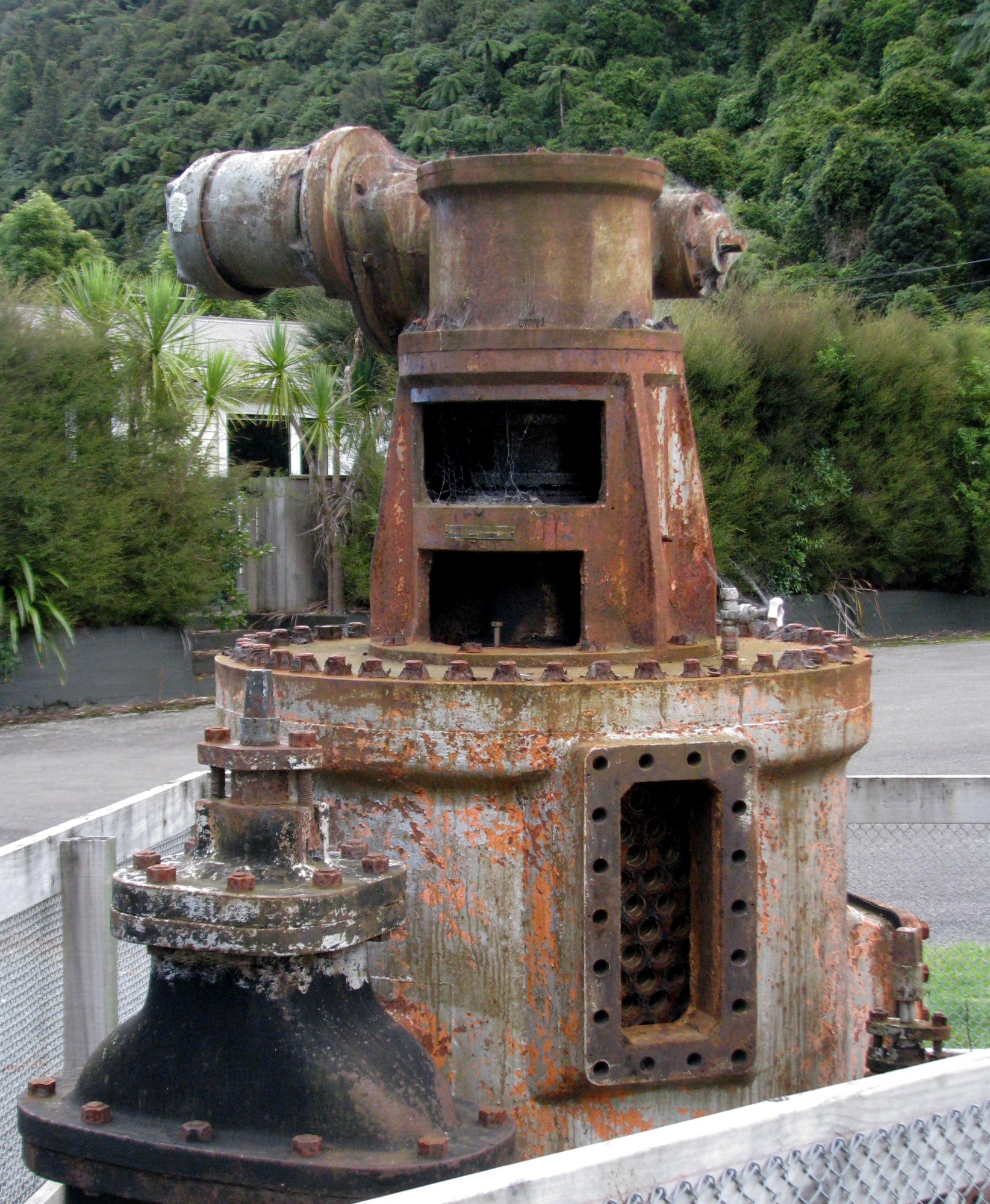 Water entered through one end of the pipeline, passed through a rotating drum fitted with mesh filter cups, and exited through the opposite end. Any debris trapped in the filters was flushed away via a scour valve that discharged into the lake behind Wainuiomata Lower Dam. An access hatch in the roof likely allowed maintenance crews to remove and clean the filters as needed.
