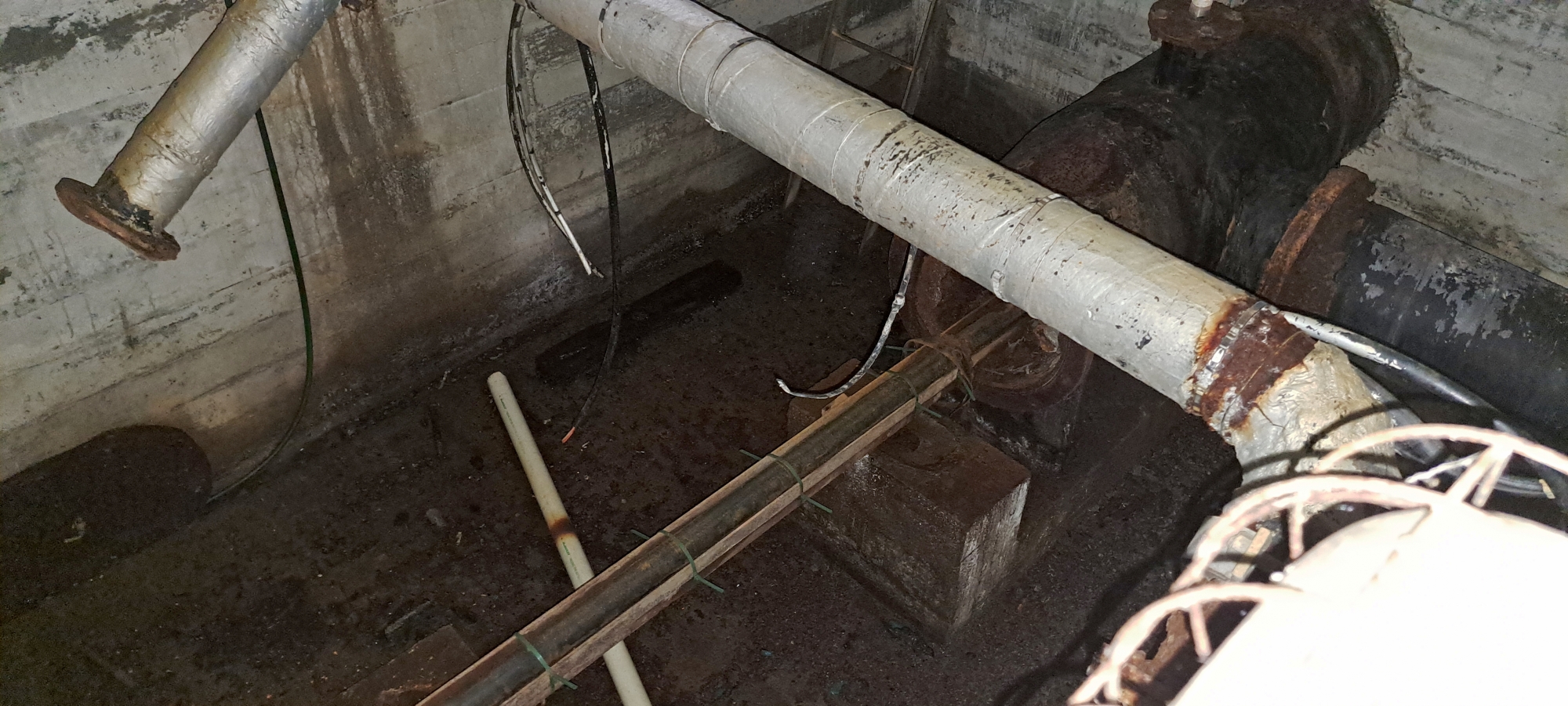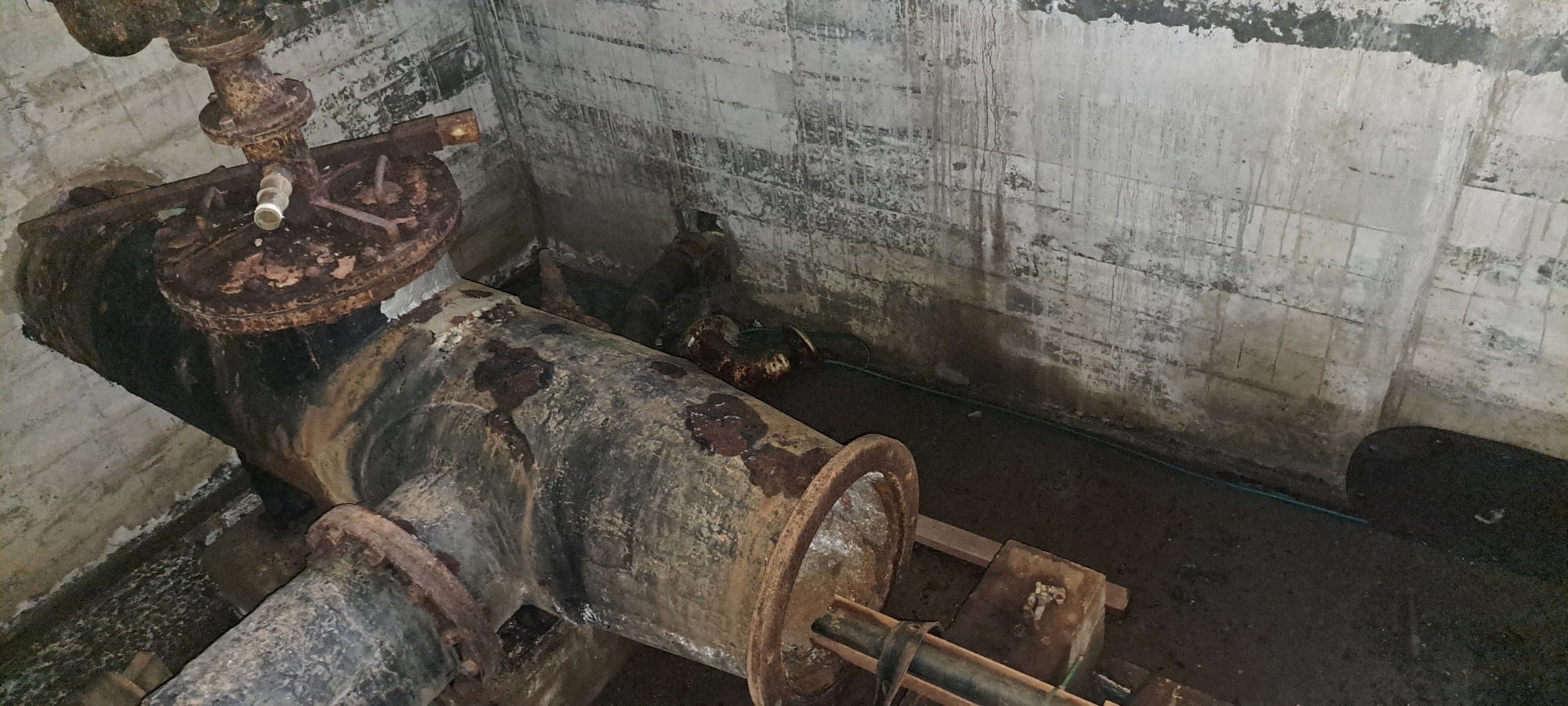 A Kinney Strainer Chamber is a type of filtration structure built into a water pipeline to prevent blockages and protect valves, meters, and other equipment from damage caused by debris carried in the flow. Its primary role was to remove solid material such as sand, rust, or organic matter before the water continued further through the system. The location of the chamber was important because venturi meters for measuring water flow were installed about 100 metres to the west. The chamber itself is made of reinforced concrete.