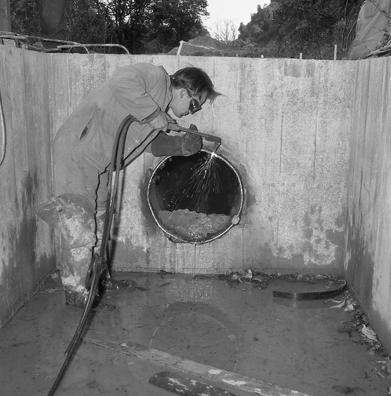 The structure contains four venturi meters that were used to measure water flow on the O-K pipeline.
