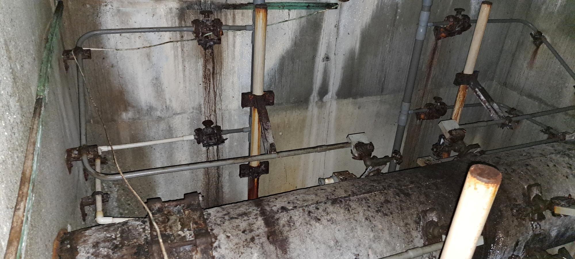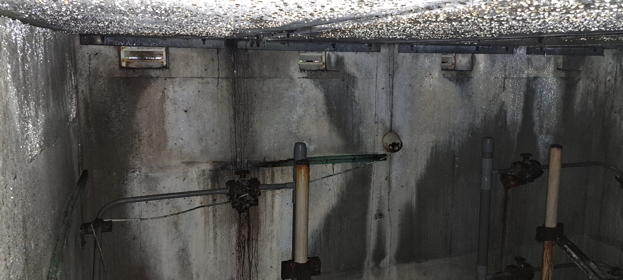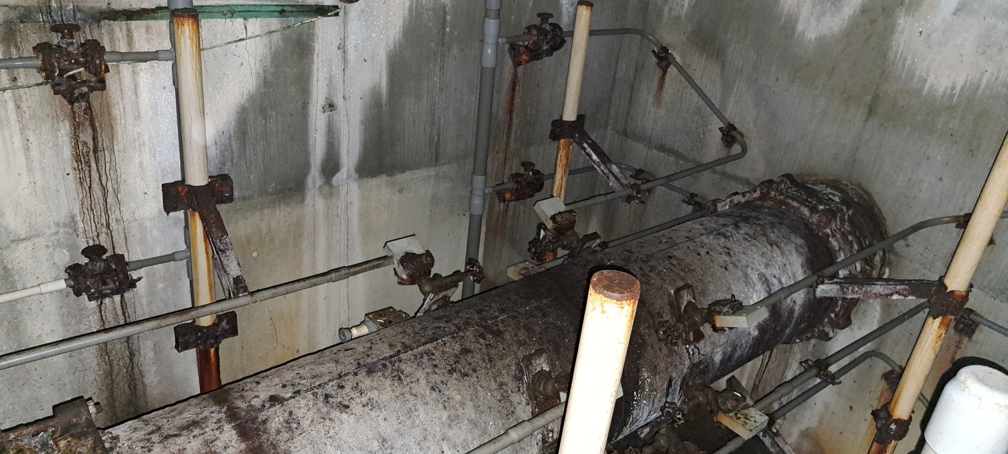 The four Venturi meters inside the building operated by taking four separate pressure readings from different points along the pipe. In many installations, the pressure tappings were positioned at the top and bottom of the pipe, and sometimes on the sides as seems to be the case with this setup. This arrangement allowed engineers to account for variations in flow caused by air pockets, sediment, or turbulence. By averaging the readings from these four points, they could obtain a precise and reliable measurement of the water’s flow rate through the pipeline. This multi-point approach ensured consistent accuracy in monitoring the performance of the water-supply system.