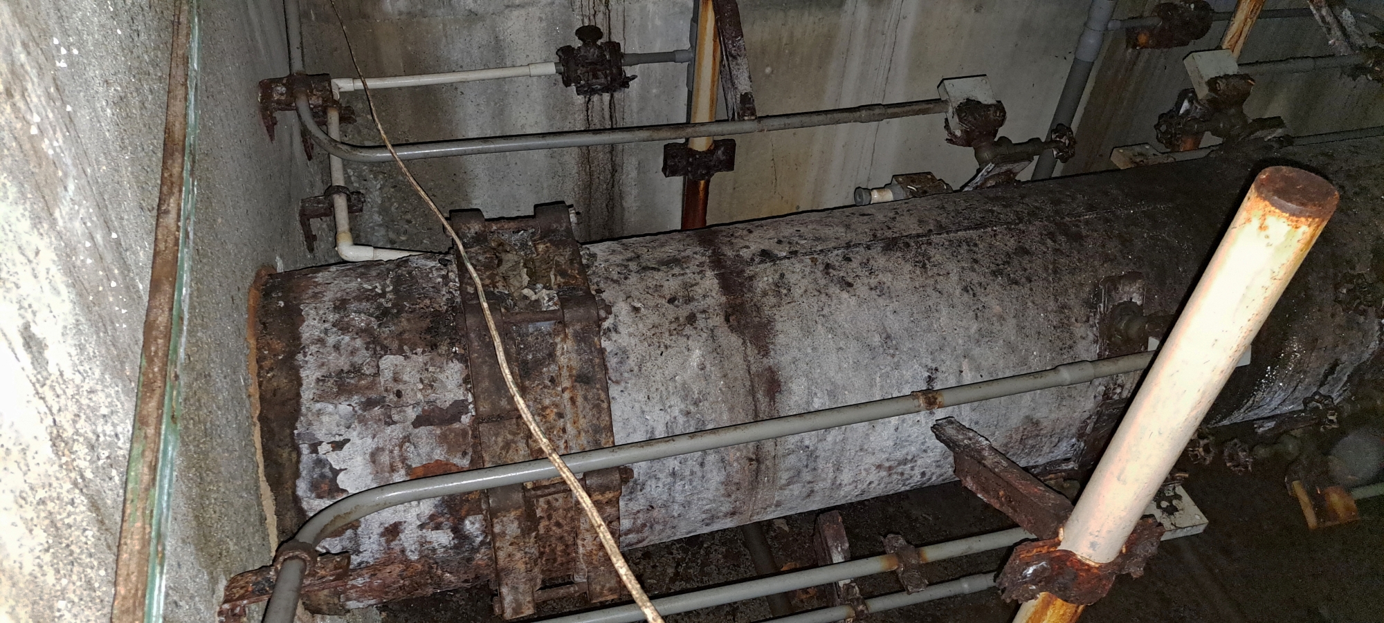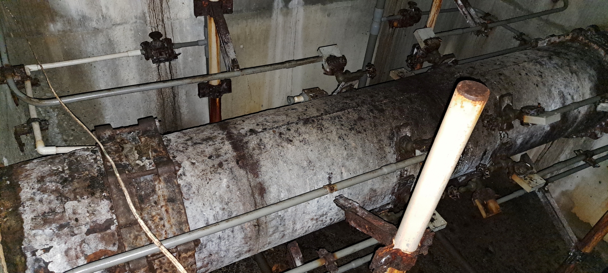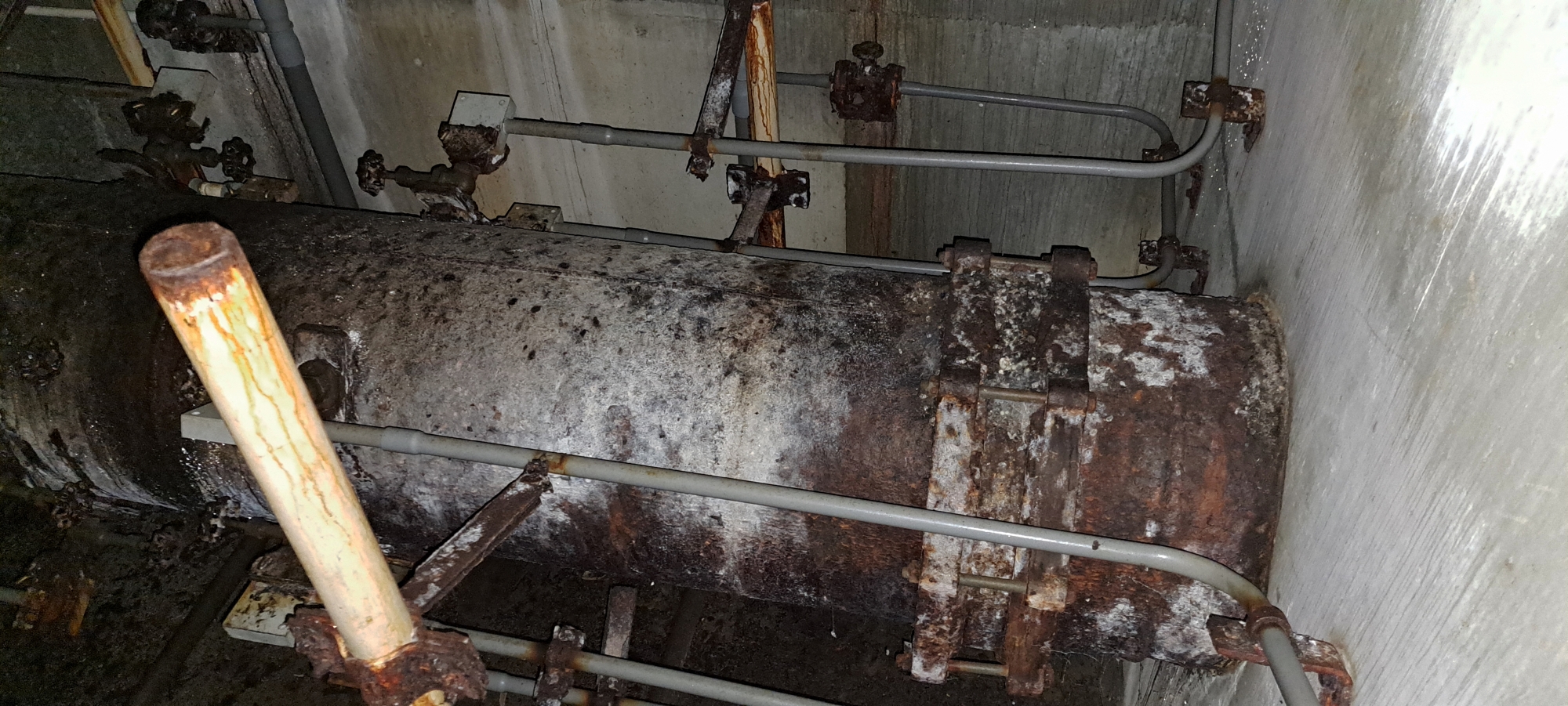 The four Venturi meters inside the building operated by taking four separate pressure readings from different points along the pipe. In many installations, the pressure tappings were positioned at the top and bottom of the pipe, and sometimes on the sides as seems to be the case with this setup. This arrangement allowed engineers to account for variations in flow caused by air pockets, sediment, or turbulence. By averaging the readings from these four points, they could obtain a precise and reliable measurement of the water’s flow rate through the pipeline. This multi-point approach ensured consistent accuracy in monitoring the performance of the water-supply system.