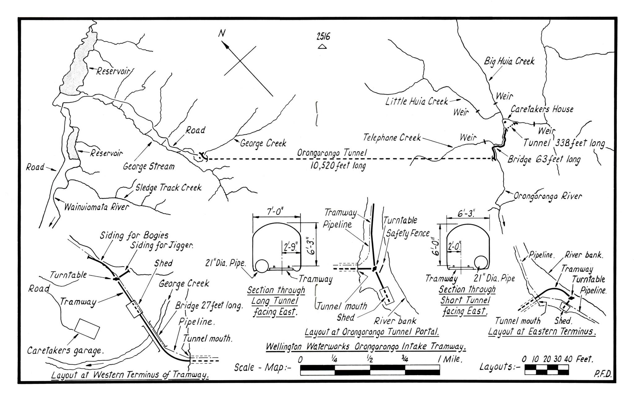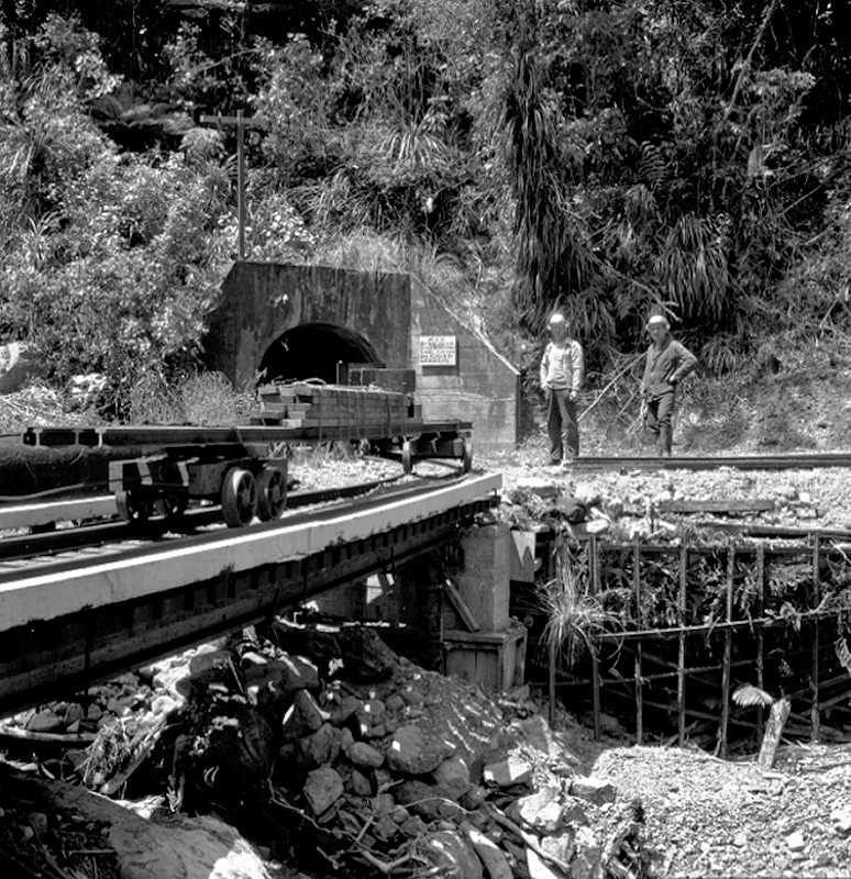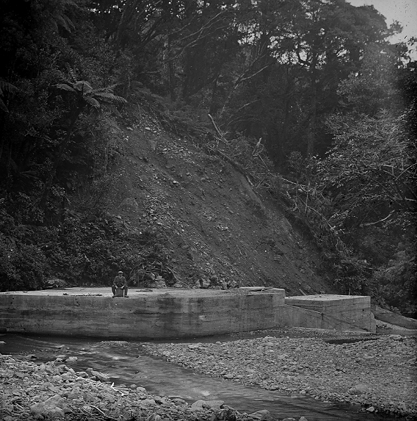Construction of weirs on the Orongorongo River, Big Huia Creek, and Little Huia Creek began in the year 1921. Simultaneously, a 3.2km tunnel cutting through the Orongorongo range was initiated to connect the Orongorongo River and valley to the Wainuiomata River and valley. Known as the Orongorongo Tunnel or Semples Tunnel,  it was complemented by a small railway and a pipeline that facilitated the conveyance of water into the main pipeline system that led to Karori. Further, a road, a bridle track, and an additional (small) tunnel.