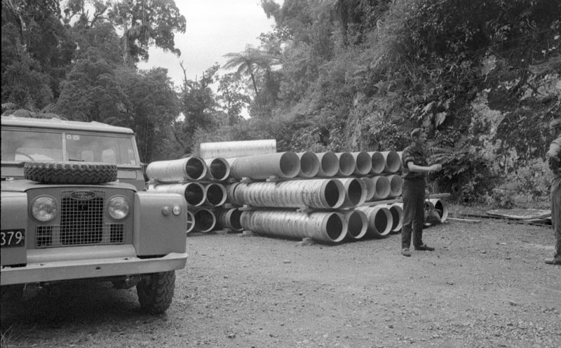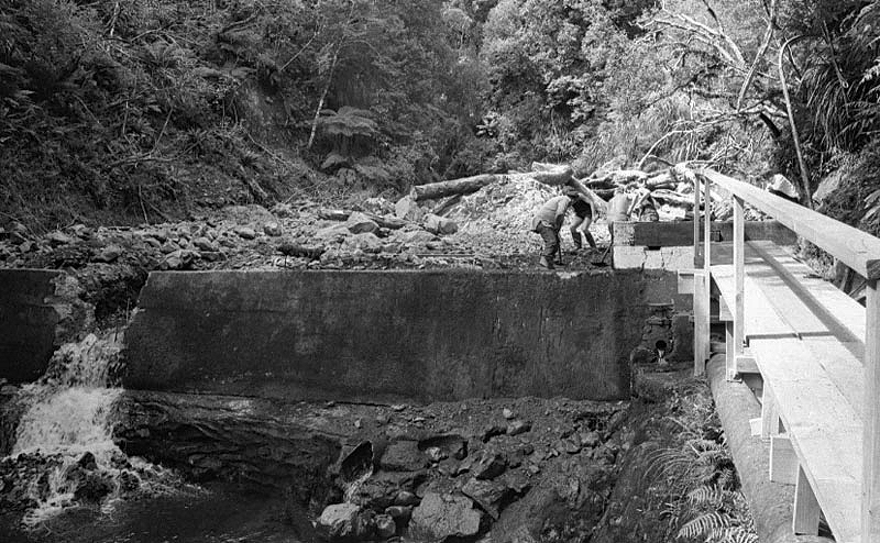 During construction, one of the major challenges encountered in the project was accessibility. A 6.5km pack track, ascending to 300 meters into the Orongorongo Valley, was established to transport lighter materials. For heavier materials, trucks were utilized to transport them from the mouth of the Orongorongo Stream, covering a distance of 45km. From this point, horse teams pulled the materials an additional 22km up the riverbed to reach the entrance of the tunnel. This route streamlined the transportation of approximately 600 tons of steel water pipes, cement, timber, and compressing plant equipment.