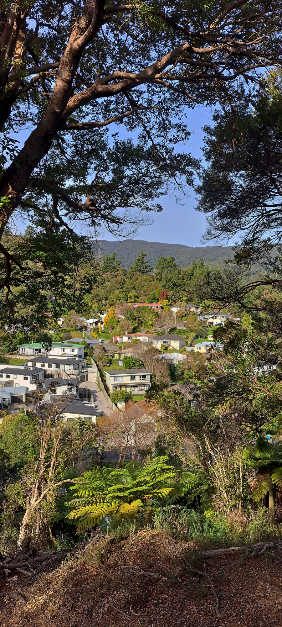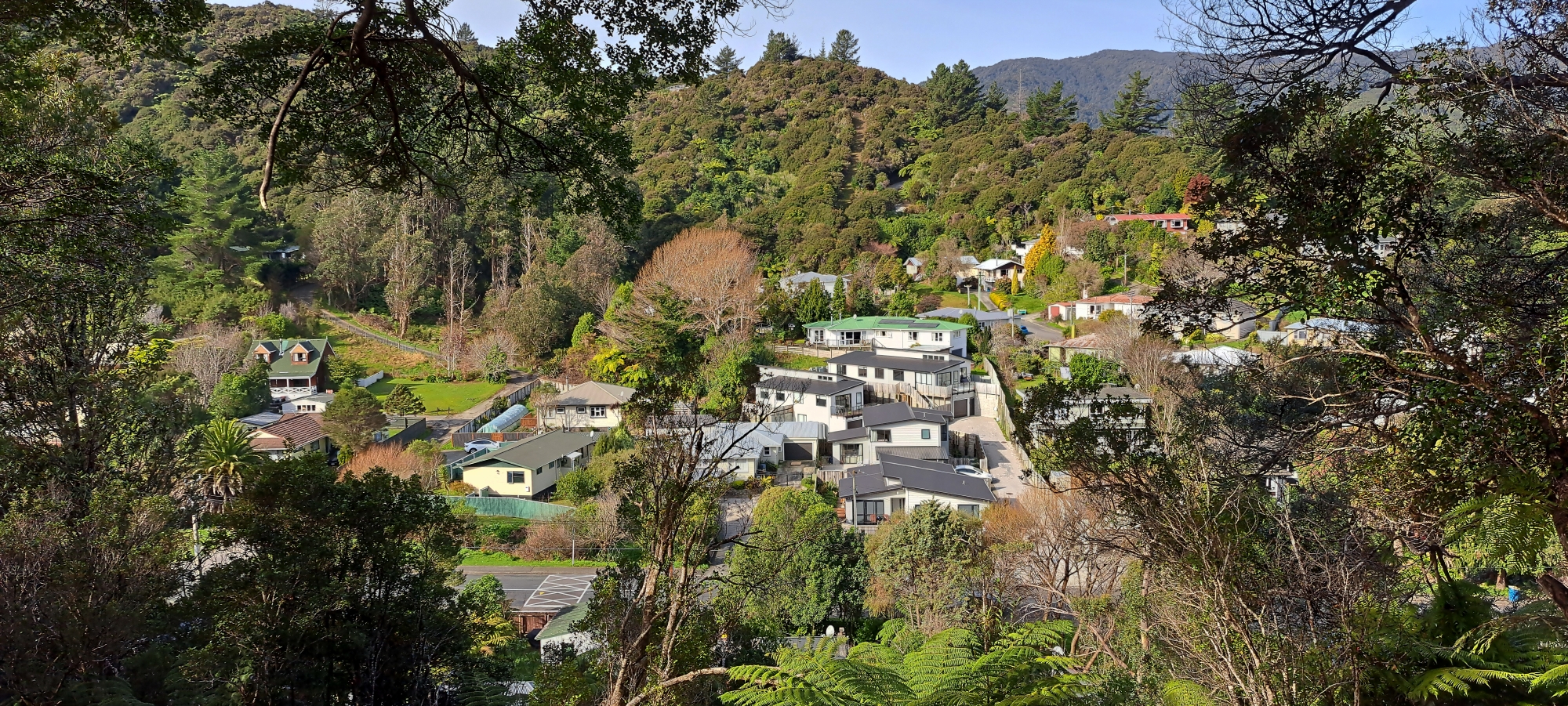 The street branches off Moores Valley Road near The Village. Despite its proximity to shops, the street feels secluded, nestled within a narrow, bush-clad valley. At the top of the street is the Wainuiomata Scenic Reserve, a 170-hectare area of native bush and hills, crisscrossed by small creeks that feed into Hair Stream. The reserve is now managed by the Department of Conservation (DOC). Prior to becoming a reserve, this area functioned as a water catchment, supplying drinking water to the local community from the early 1940s until its closure in the early 1960s.