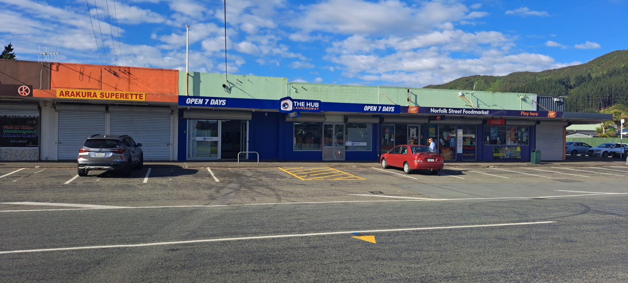 Norfolk Street in Wainuiomata is a local neighbourhood retail strip that took shape in the early 1960s. It serves the surrounding residential community and has traditionally provided everyday services, including a small supermarket or superette, takeaway food outlets, and other convenience-focused businesses. The shopping area sits between the Arakura and Pencarrow parts of Wainuiomata and has been part of the suburb’s retail fabric since at least the 1960s.