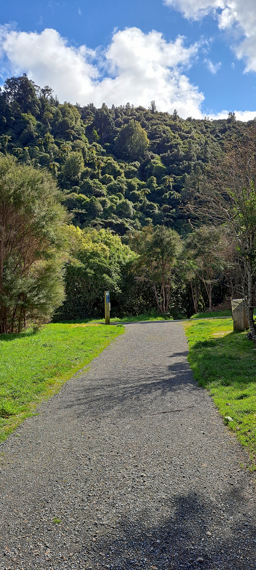Before it became an official walk within Wainuiomata Regional Park, some form of track ran through Gums Loop Meadow as early as the 1880s. Also. Reservoir Road, which now makes up part of the loop, was also already in use at that time as a tram which was used during construction of Lower Dam in the early 1880s. If you click the photograph to the right and zoom in, you can see the track running below the hills with fencing in the background. Today, the surrounding eucalypt forest in Gums Loop Meadow still contains remnants of old fences and sections of the former farm track. Learn more.